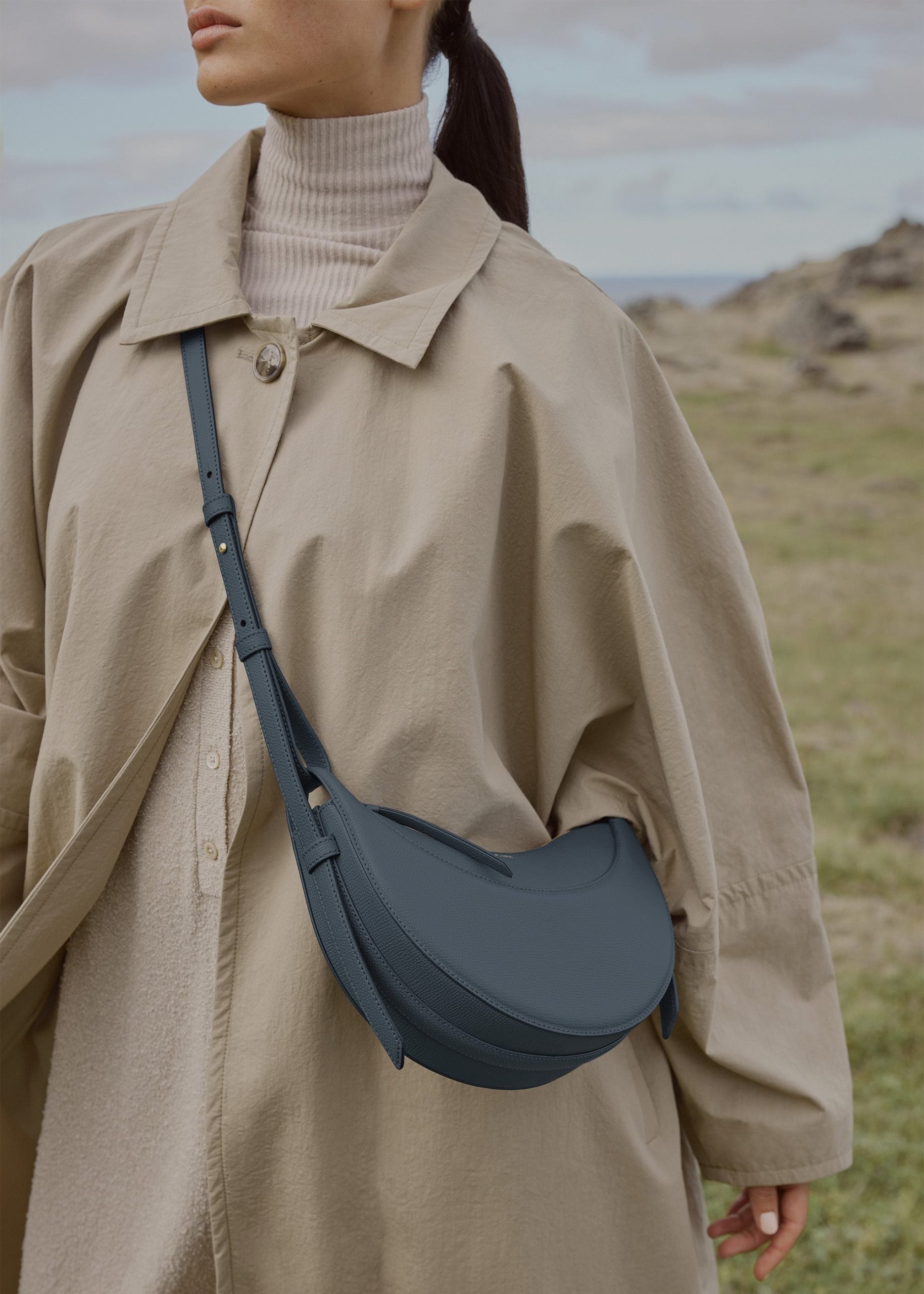 Avec sa forme arrondie, son rembourrage en mousse et ses coutures main, le « Numéro Dix » est un clin d’œil aux codes équestres de la sellerie. Son design en demi-lune met en valeur la juxtaposition des courbes.
